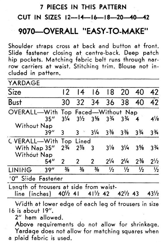 Pdf 1940s Pattern Land Girl Dungarees Pants Playsuit Cap Mult Vintage Sewing Pattern Company